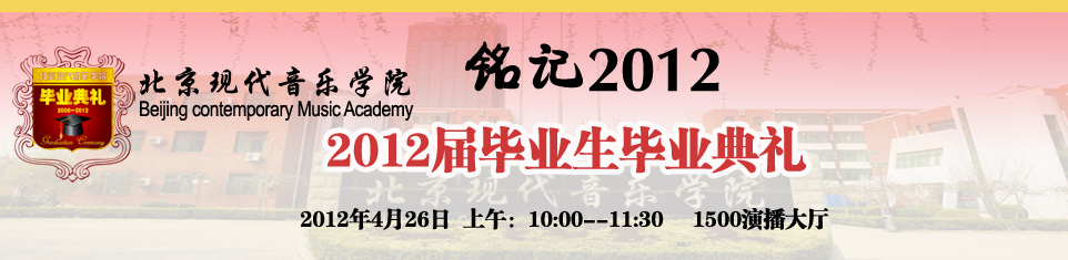 4月26日上午,“铭记2012”北京现代音乐学院2012届毕业生毕业典礼将在北音1500演播大厅隆重举行。经过4年的不懈努力,北音08级一千余名毕业生终于圆满完成了学业,迎来了毕业的幸福时刻。(查看全文)