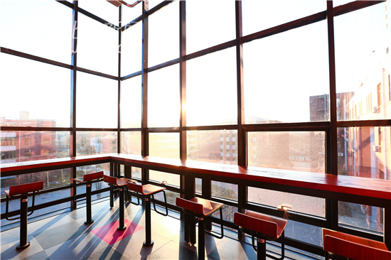舞蹈练功房两侧设置了宽敞的咖啡交流区,交流区设置不同形式的座椅,并安排WIFI覆盖,充分满足学生课余时间的交流活动。