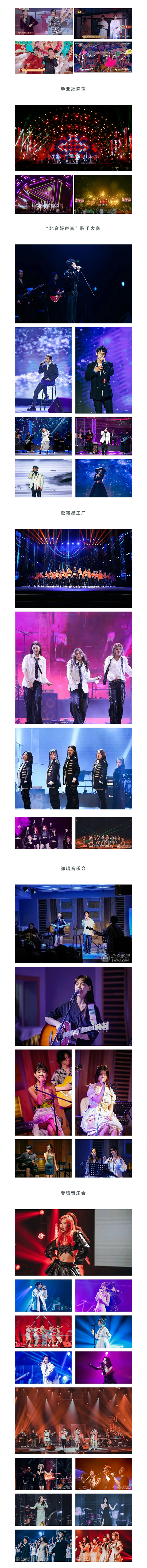 除此之外,流行演唱学院还举办“新生驾到”新生音乐会、“毕业狂欢夜”学生毕业音乐会、“北音好声音”歌手大赛、各工作室汇报演出、“名师有徒”师生音乐会、原创不插电音乐会、“草坪音乐会”唱作工作室汇报演出、“成团之夜”唱跳工作室汇报演出、表演工作室汇报演出等各级校内教学实践活动,为学生搭建多样化的艺术实践平台。
