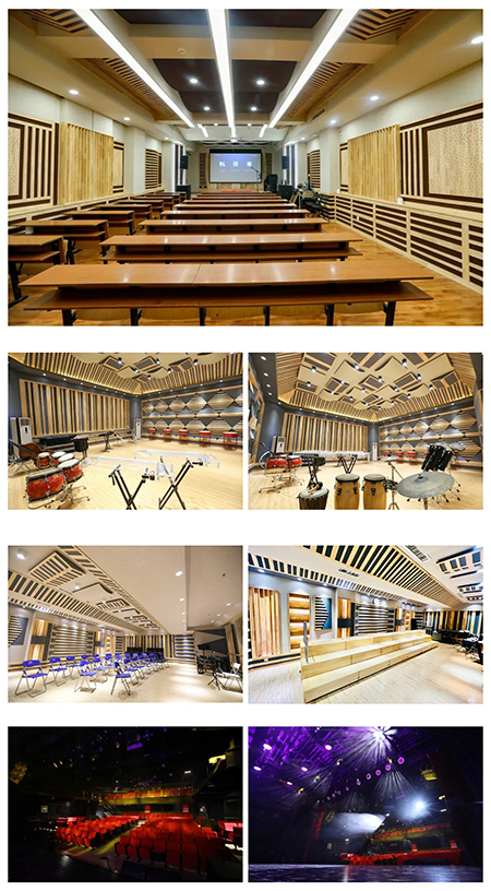 音乐教育学院拥有先进的硬件教学设施及各类排练场地。教学区共有琴房30间、带有伸缩合唱台的排练厅1间、音乐厅1间、多媒体教室2间,教室及排练厅内配备KAWAI钢琴、YAMAHA专业音响、教学设备。学院还设有舞蹈排练厅、电钢琴教室、计算机教室以及演播大厅、黑匣子剧场等专业演出场馆,可满足学生日常排练、比赛及汇报演出。