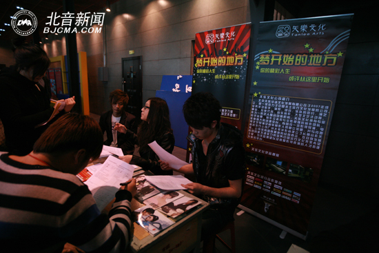 为了认真做好毕业生就业工作,更好地为用人单位提供良好的人力资源服务,增强学院与用人单位的合作与交流,由学生处、就业指导中心以及二级学院就业指导站承办的“北京现代音乐学院2010毕业生才艺展示暨艺术人才推介会”于4月23日下午1:30在1500平米演播大厅隆重举行,李罡院长出席推介会并发表重要讲话,我院就业指导中心的蒋话老师担任此次活动的主持人,中国东方演艺集团民乐团团长周维、副团长丁汝芬,粉娱中国CEO马向东,大音华典唱片公司总经理刘泓驿、演绎总监赵宏等等嘉宾到场,来自新加坡、香港、台湾、北京、山东、湖南等各地的100余家用人单位齐聚一堂,为我院毕业生提供了歌手、舞蹈演员、经纪人等数百个职位,招纳贤才。而我院毕业生们别具匠心地用一场精彩绝伦的才艺展示预热推介会,以直观的方式向到场的近百个用人单位推介自己,寻找合适的工作机会。