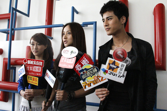 我院毕业生姜潮(男一号、右一)与内地走红影星莫熙儿(女一号)接受专访