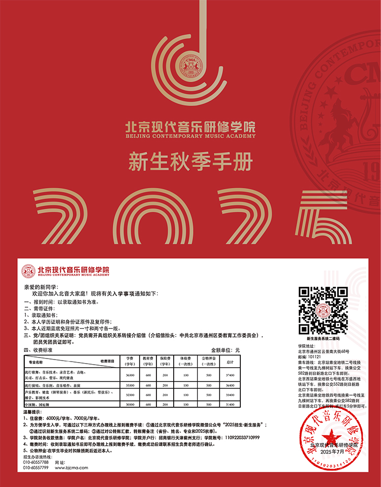 北京现代音乐研修学院 www.bjcma.com 地址:北京市通州区云景南大街68号 邮编:101121