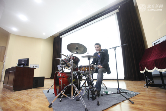10月23日,美国著名爵士鼓演奏家Anthony Vanacore做客第三届北京现代国际鼓手节大师讲堂,在北京现代音乐研修学院第三报告厅带来一堂爵士鼓练习的精彩讲座。