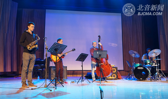 现场,Satoshi Kataoka、Allan Mednard、高太行、张珂四位大师先为同学们演奏了三首爵士乐作品,其中两首是Satoshi Kataoka大师的原创作品;随后,Satoshi Kataoka和Allan Mednard两位大师分享了他们在爵士乐创作、乐器练习及演奏方面的内容心得,并积极与现场的同学们进行互动,不但邀请同学上台演奏,还给予了专业方面的详细指导,让在场的同学们受益匪浅。