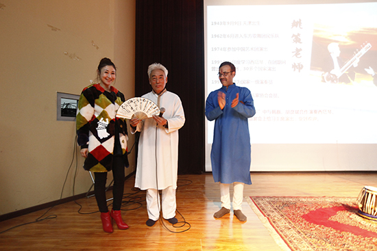 11月27日,国家一级演奏员、东方歌舞团民乐演奏员姚策老先生,以及印度驻中国使馆文化处艺术家纳文·库马勒·辛哈Naveen Kumar Sinha做客北京现代音乐研修学院大师讲堂,二位嘉宾与同学们分享了诸多关于印度的音乐、文化以及他们各自在音乐艺术上的成长经历。