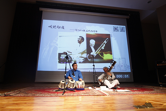 姚策老先生带着西塔琴与纳文老师的Tabla鼓一起演奏印度音乐