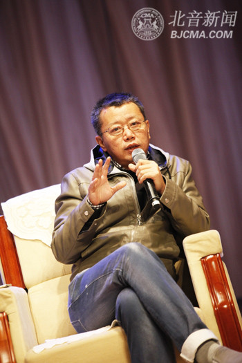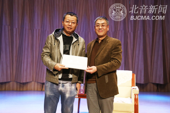 现场,宋柯先生首先简单阐述了自己从麦田音乐、恒大音乐再到阿里音乐的思想理念及角色转换经历过程,又解读了现在互联网音乐版权体系情况,以及各个平台通过差异性经营创造赢利模式的概念。随后,宋柯先生与观众进行互动交流,以幽默机智的语言回答了观众提出的各种问题,并表示:“北音的学生很幸福,如果我上学的时候就有北音,我就不去清华了。”现场笑声掌声不断,气氛十分愉悦。讲座结束后,宋柯先生接受了马铁英副院长代表我院颁发的“北京现代音乐研修学院客座教授”聘书。