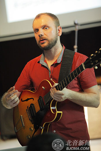 9月7日12:00,美国著名爵士吉他演奏家Rafal Sarnecki做客北京现代音乐研修学院大师讲堂,在J501教室为爵士乐学院的同学们带来一场精彩纷呈的大师课。