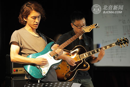 9月12日,日本ESP音乐学院贝司教师前田久史、吉他教师国田大辅以及鼓专业教师実川秀一先生3位重量级大师来北京现代音乐研修学院演出交流,为爵士乐学院的同学们带来了精彩纷呈的大师课。