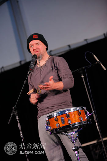 在结束了为期一天的全国职业鼓手大赛决赛之后,11月4日10:15,第四届北京现代国际鼓手节迎来了首场大师讲座。德国著名鼓手、正宗的Moeller技巧传承人Claus Hessler在国家体育场(鸟巢)南广场放羊工社第三展厅为来自全国各地的鼓迷带来了一堂精彩的大师课。