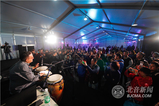 11月5日10:15,REMO国际代言打击乐艺术家、Willie Rosario乐队打击乐手Jimmie Morales做客第四届北京现代国际鼓手节大师讲堂,在国家体育场(鸟巢)南广场放羊工社第三展厅带来了一堂关于拉丁打击乐的精彩大师课。