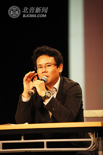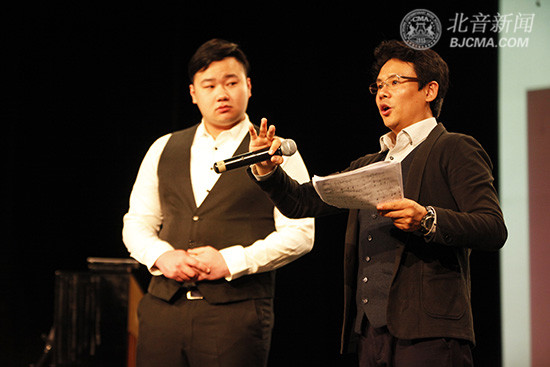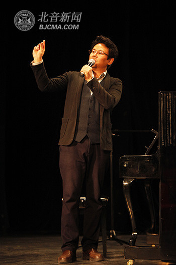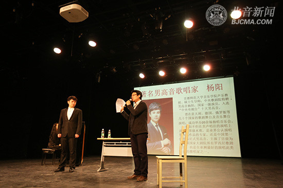 讲座共分成两个部分。首先,杨阳老师分享了多年以来自己在歌唱舞台上的经验及体会,并介绍了自己在歌唱领域的探索。第二个部分,杨阳老师邀请了几名学生与他一起互动,为其指导。