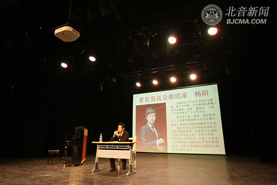 4月14日,首都师范大学音乐学院声乐教授、硕士生导师、中央歌剧院签约艺术家、国家一级演员杨阳做客北京现代音乐学院大师讲堂,在黑匣子剧场为音乐教育学院师生带来了主题为“现代美声的演唱技巧”的精彩讲座。