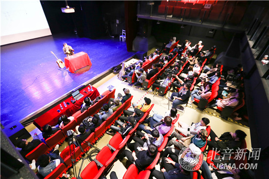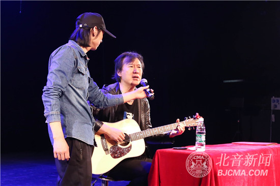 4月19日下午3点,中国内地民谣男歌手马条做客北京现代音乐研修学院大师讲堂,在黑匣子剧场为北音学子带来了主题为“音乐是一种信仰”的精彩大师课。