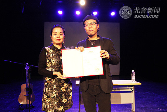 流行演唱学院姜红莲院长向许钧授予“授课荣誉证书”