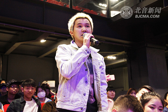 现场,许钧以诙谐的方式分享了自己的心路历程,并演唱了《I Can't Take My Hate》、《暖光》、《自己》三首歌曲。最后,同学们向许钧提出了感兴趣的问题,许钧分别细心解答,大师课在欢愉的氛围中圆满结束。