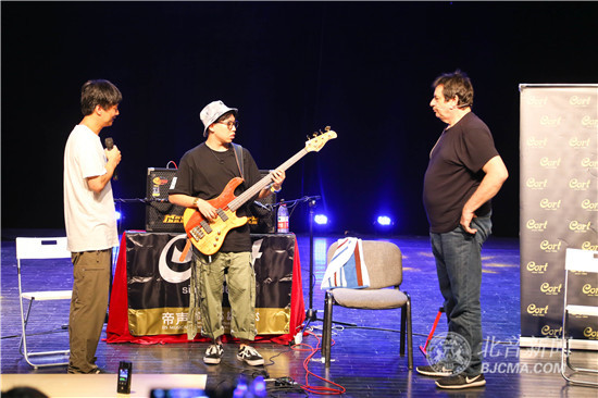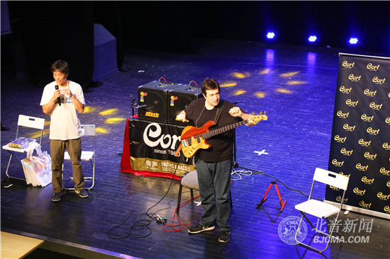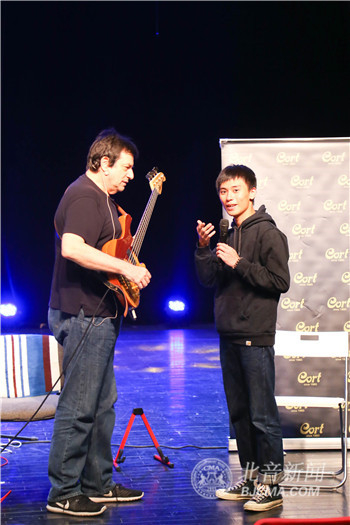 现场,Jeff Berlin化身为DJ,用“你好”“你好啊”中文,配合随性的演奏完成了一段电贝斯Freestyle作为开场,令台下观众不断欢呼。随后,Jeff Berlin分享了电贝斯的学习方式、基本弹奏技巧以及如何更有效果的练习等知识,并针对细节与同学们进行了现场互动示范教学。Jeff也通过几段精彩的贝斯速弹solo向同学们展示了电贝斯手应如何使弹奏更具表演性,其炉火纯青的演奏技艺使在场观众叹为观止。
