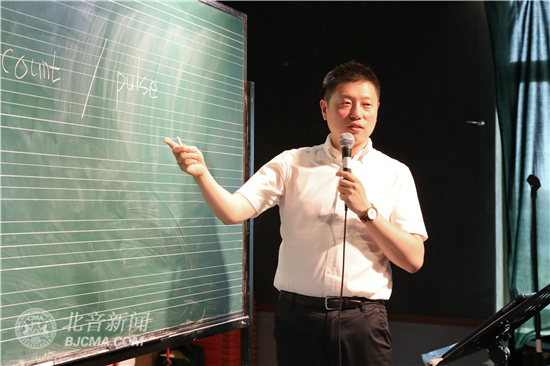 当日12:00,白石大学Eun Kyung Park院长等一行到访北音,首先白石大学Beomyul Yu老师在J501教室为爵士乐学院的学生们带来了主题为《对基础节拍和律动感的不一样思路靠近》的大师课精彩讲座。Beomyul Yu老师深入浅出地讲解了基础节拍和律动感等问题,对于同学们的提问互动一一分析诠释,轻松而不乏深度的公开课堂让同学们受益良多。