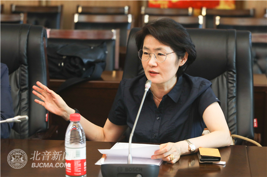 13:30,教学研讨会上,宋军光院长向韩国白石大学Eun Kyung Park院长等一行介绍了学院的发展概况及近年来取得的突出成绩,并观看了学院宣传片,而Eun Kyung Park院长也介绍了白石大学的发展现状,并表达了与北音爵士乐学院的合作意向。她表示,北音的发展和成就令人十分震撼,北音的爵士乐学院是全中国唯一一所系统化、多元化及专业化的现代器乐学院,是中国爵士乐专业教育领域的标杆,希望韩国白石大学能与北音爵士乐学院达成合作。
