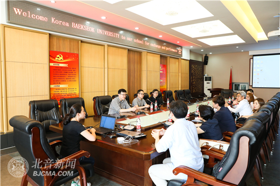 近日,韩国白石大学Eun Kyung Park院长一行来到北京现代音乐研修学院交流访问。北音爵士乐学院院长宋军光在第一会议室接待了来宾,双方进行了热烈的教学研讨座谈,并在会后进行了小型音乐演出交流互动。