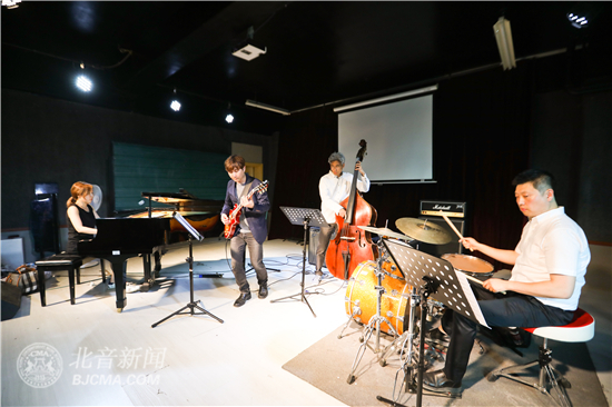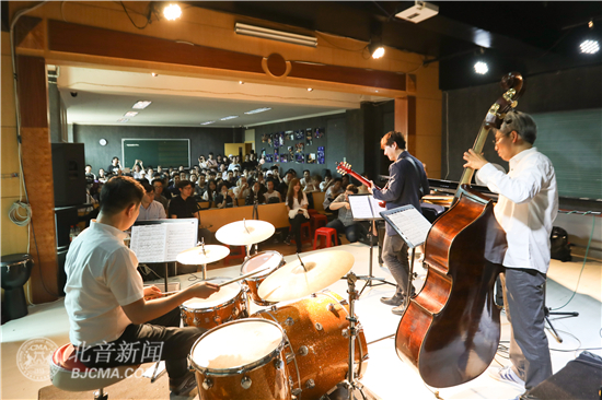 讲座结束后,韩国白石大学院长等一行又在J501教室举行了小型交流音乐会。演出中,访问团成员们的娴熟高超技巧以及对爵士乐的自然把控能力,赢得了现场学生的热烈掌声,现场气氛十分活跃。