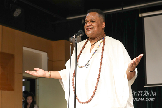 现场,Lawrence Watson教授以边示范边解答同学提问的互动形式,分别阐述了节奏的要素和节拍所需的专业知识。他提到:“在音乐中,节奏与节拍是两个不同的概念,节奏存在于节拍之中,节拍也离不开节奏,两者相辅相成共同构成音乐的骨架,来支撑起音乐的律动。”Lawrence Watson还分解了音乐结构、表达情绪等方面要注意的要点,他用诙谐的语言阐述了声乐多种形式的特点。Lawrence Watson教授还表示:“我们之所以热爱音乐,是因为能够在音乐中宣泄情感找到共鸣,而一段美好的音乐是离不开节奏、节拍、速度、力度之间的紧密配合。”