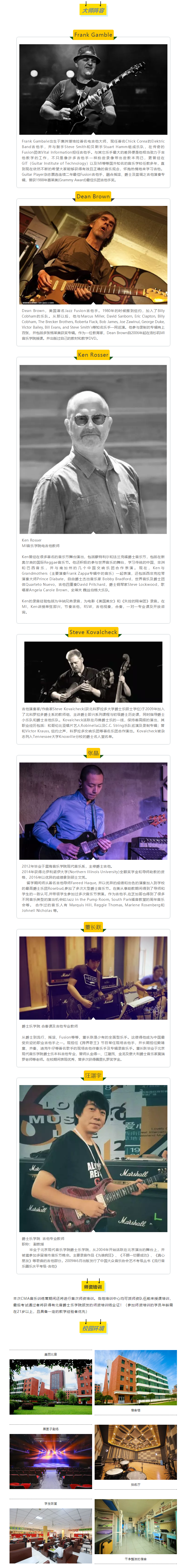 本次CMA国际音乐训练营吉他专业将进行5天的课程训练,有世界顶级吉他大师分享的大师课,有MI吉他系统课程,UNC爵士吉他系统课程,还有吉他和弦应用、五声音阶之运用、无敌扫拨技巧等。此外,爵士Fusion大师Frank Gambale以及Dean Brown还开设了5人小组课,让学员们真正零距离地与大师面对面交流学习。