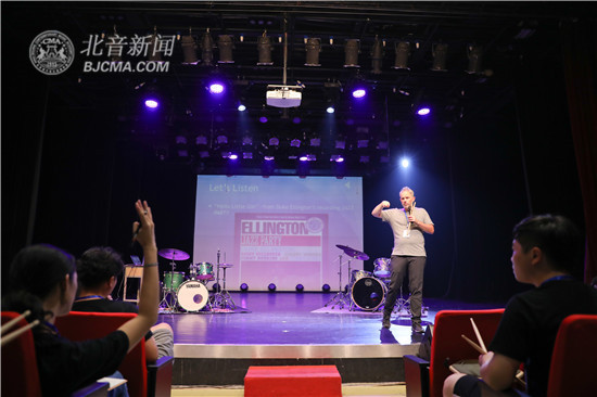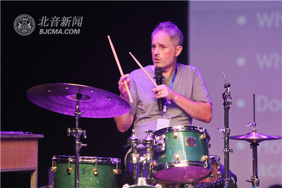 7月30日,全美One O’Clock爵士大乐队鼓手Jim White做客CMA国际音乐训练营暨北京爵士音乐节大师讲堂,在黑匣子小剧场为爵士乐学院的同学们带来了一堂以“UNC套鼓系统课程”为主题的精彩大师课。