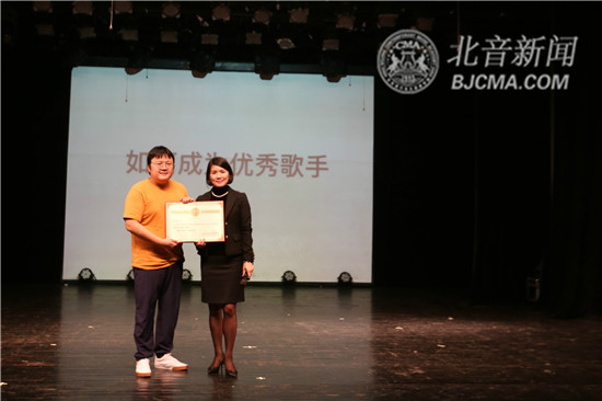 流行演唱学院副院长陈莉萍为邓柯老师颁发大师讲座荣誉证书