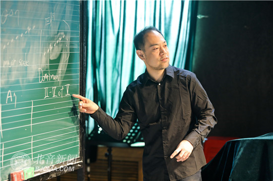 4月2日中午,日本爵士吉他专家、作曲家片岡知志做客北京现代音乐研修学院大师讲堂,在J501教室为爵士乐学院的同学们带来一场精彩的大师课。
