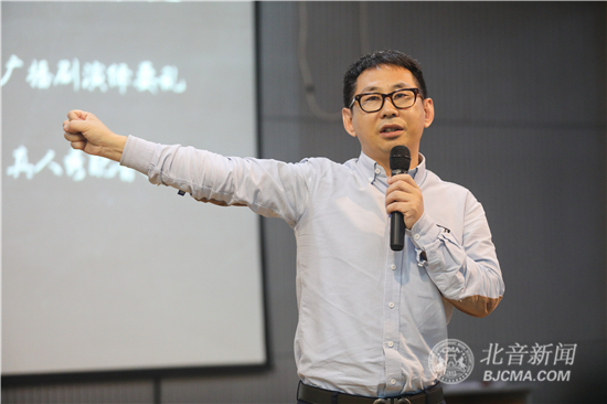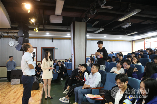 近日,著名配音演员周扬做客北京现代音乐研修学院大师讲堂,在地下报告厅为播音系师生们带来了主题为《融媒体时代,声归何处》的精彩大师课。