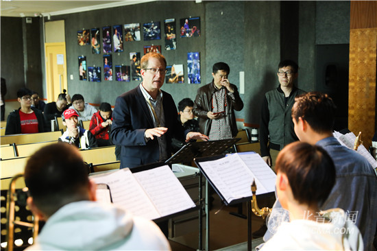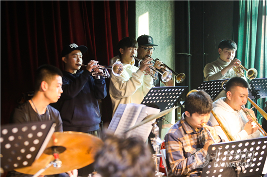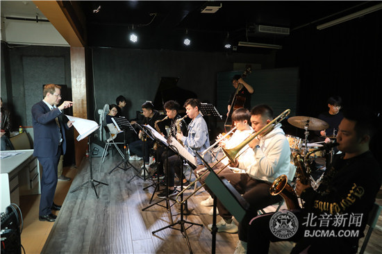 现场,乔大师为学生演唱了许多音乐例子,还鼓励学生以相同的方式练习。作为示范,乔大师亲自带着学生进行演奏练习,不断地引导学生在音乐演奏中发挥创造性,帮助学生构成口形,指导学生如何发出第一个音响。学生们认为,参加乐队表演对于学习爵士乐非常重要,而且也很有趣,能够巩固课堂上的学习,也能帮助他们加强节奏感,积累实践演出经验。