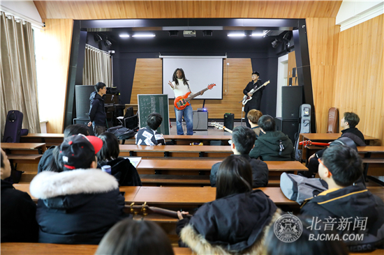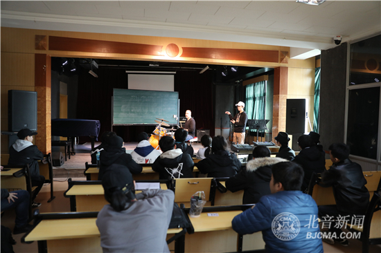 近日,由美国爵士鼓大师Mike Packer、著名歌手Lauren Pardini、当代电吉他专家Andre Nieri、音乐家Philip Bynoe组成的美国MI音乐学院专家团做客北京现代音乐研修学院大师讲堂,为爵士乐学院的同学们带来精彩的大师课和小型音乐会。