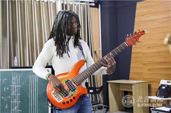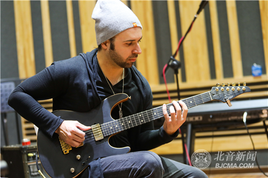Philip Bynoe首先了解了在座学员们在学习过程中遇到的问题,后邀请同学们逐一上台弹奏,其凭借丰富的演出经验和创作经历针对每位同学的现场表现,进行了详细的示范和指导。他说“节奏和音色都很重要,它们远比音乐的复杂度要更重要。”而后,Devin Kelly进行了动感十足的现场演奏,以便大家更深刻地体会其所讲内容。