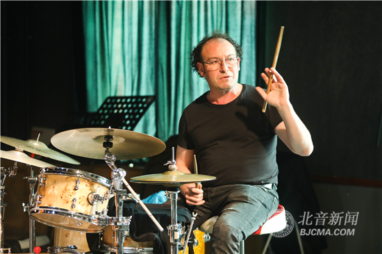 现场,三位大师以精湛的技艺、默契的配合为观同学们演奏了《Frida kahlo》《Rosa parks》《Namal》《Malala yousafzai》等六首专辑中的原创曲目,并围绕音乐对于他们自身的意义和重要性,分享了在音乐创作、乐器练习及演奏方面的经验和心得。其中,鼓手LAR Legido老师重点介绍了他常用的几种握槌方式以及如何制造出自己想要音色的方法,他强调:“每个人都有最适合自己握槌方式,想要更好地诠释曲目,还是要通过日常的多种练习,来找到自己最适合的握点。”