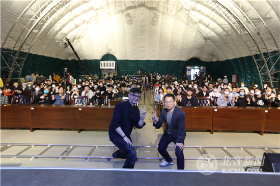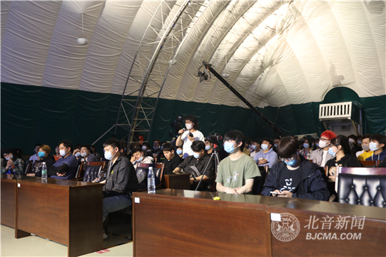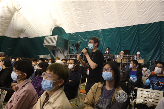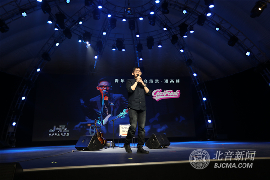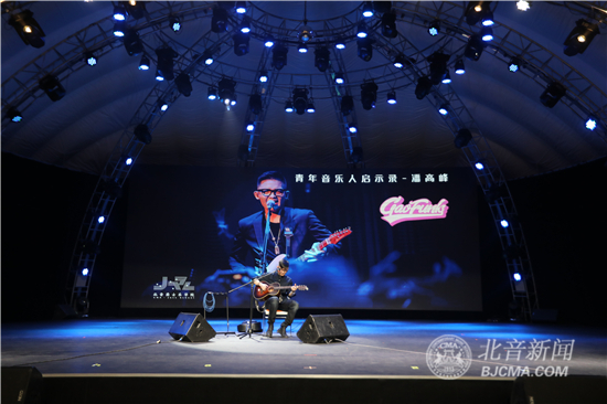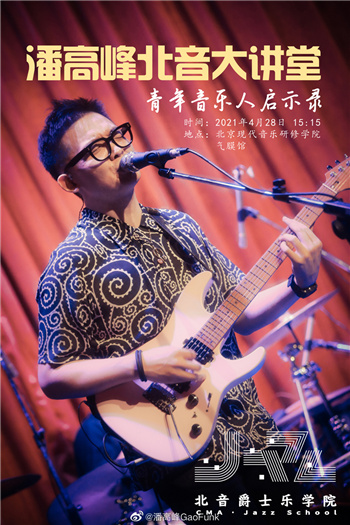 4月28日下午,青年音乐唱作人、G-ELEVEN乐队主唱&吉他手潘高峰做客北京现代音乐研修学院大讲堂,在气膜馆为热爱音乐的北音学子们带来以“青年音乐人启示录”为主题音乐讲座,分享了自己的音乐经历,详细解答了同学们提出的“原创音乐制作技巧”“如何坚持音乐道路”“如何与非专业人士沟通音乐”等问题。最后,潘高峰强调:时代变了,现在一定要想清楚自己为什么要做音乐,是否是真的热爱它。只有想清楚了,才能坚持,才知道如何坚持。