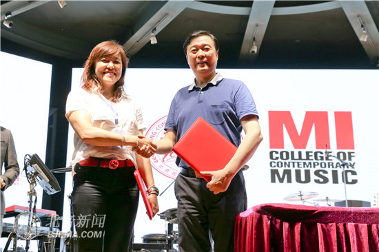 7月30日晚,在CMA国际音乐训练营首场音乐上,北京现代音乐研修学院李罡与美国加州著名的流行音乐学院Musicians Institute (又名洛杉矶音乐学院,以下简称 MI音乐学院)表演学院院长Rachel Yoon两位院长,在所有嘉宾和观众的见证下,正式签署了2+2教育合作备忘录,北京现代音乐研修学院与美国MI音乐研修学院,这两所中美最深具影响力的现代音乐学院,一致决定在中国合作成立北音-MI音乐学院,为中国培养更多优秀的现代音乐人才!