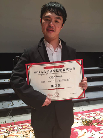 2014级音乐剧系岑李东荣获个人优秀奖