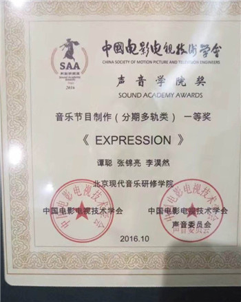 录音艺术系张锦亮、李漠然、谭聪3名同学共同打造的作品《expression》荣获音乐节目-分期多轨类一等奖