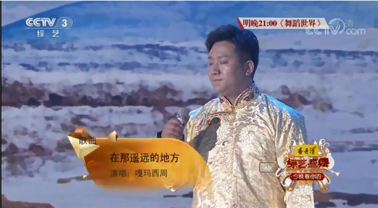 7月11日晚,北京现代音乐研修学院学生、藏族新生代音乐创作型唱将——嘎玛西周,参加CCTV-3《综艺盛典》节目,以一首《在那遥远的地方》荣获金奖。