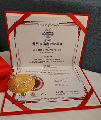 裴佩(左)荣获2020WCOPA世界表演艺术锦标赛金奖