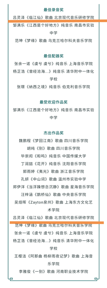 近日,由中国传媒大学、清华大学、QQ音乐、腾讯音乐人联合主办,北京现代音乐研修学院音乐科技学院、中央音乐学院、四川音乐学院等共同协办的2020音创未来年度颁奖盛典暨音创未来QQ音乐国风艺术大赛圆满落幕!大赛遴选出了一批优秀的音乐创作者、演唱者、以及服装设计者,其中北京现代音乐研修学院音乐科技学院学子吕灵泽凭借歌曲《临江仙》荣获国风原创音乐赛道最佳录音奖、杰出作品奖双项大奖。