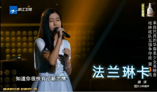 9月2日晚,浙江卫视《中国新歌声》庾澄庆战队五强争夺战如约而至,北京现代音乐研修学院音乐科技学院音乐技术系2015级学生吴映香与贵州布依族姑娘王闯对战,深情演绎歌曲《秋天别来》,虽最终未能晋级成功,但她凭借得天独厚的嗓音和纯熟的唱功,获得了助阵导师范晓萱的赞赏:“吴映香的声音有甜度、有技巧,真的很棒”。