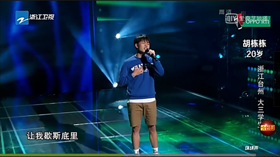 外表十分清秀的胡栋栋虽然年龄并不大,但是对歌曲的表现和驾驭已经超出了他这个年龄的水平。蓝卫衣加短裤的装扮也显得十分可爱,但是他演唱的功力却十分深厚,声音非常粗犷有力,刘欢导师将他形容为“顶门火”。据了解,胡栋栋高中的时候才走上了音乐的道路,2014年入读北京现代音乐研修学院华语系,到现在他能把整首歌曲如此稳定地演绎出来,爆发出如此强大的音乐能量,绝对是一个实力选手。
