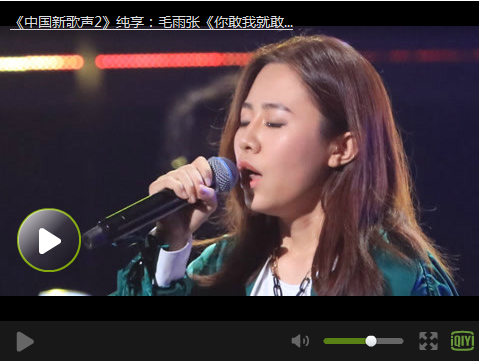 8月11日晚,浙江卫视《中国新歌声》第二季盲选抢人收官战圆满落幕,北京现代音乐研修学院欧美系2010级毕业生毛雨张以一曲李佳薇的《你敢我就敢》成功加入那英战队。