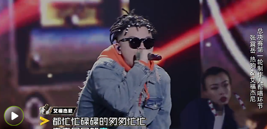 伴随艾福杰尼一路成长的导师热狗,评价道:“我非常非常的喜欢艾福杰尼,他在我眼中是各项全能,他会表演,会耍宝,可以驾驭old school的beats,唱新的他也没问题!”