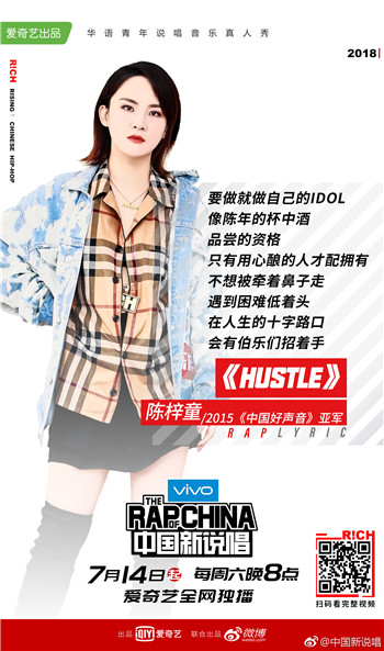 《中国新说唱》每周六晚20:00爱奇艺全网独播,一同期待陈梓童的精彩表现吧!