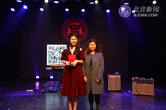 翻唱组一等奖获得者黄薇薇领奖