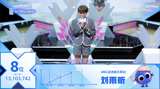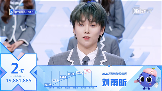 现场,20名练习生分为两组分别为大家带来《A Little Bit》、《猎》两个舞台表演,刘雨昕再次用自身魅力征服全场,成功获得出道名额。 三个多月的赛程中,刘雨昕凭实力获赞,不仅作为主题曲中心位领舞,还在小组舞台评比中多次获得第一名,总排位更是逐渐攀升,最终以排名第1成功C位出道。